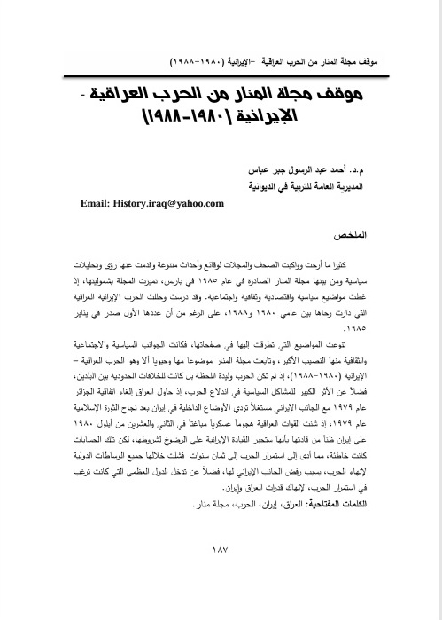 Al-Manar Magazine's Stance on the Iran-Iraq War for the Period(1980-1988)