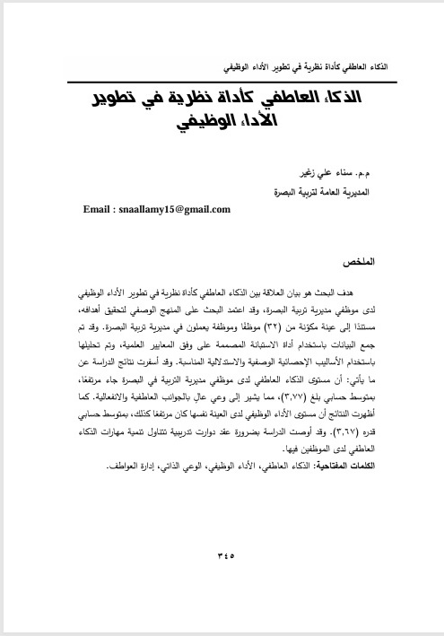 This study examines the relationship between emotional intelligence as a theoretical tool and the enhancement of job performance among employees of the Basra Directorate of Education. The study employed a descriptive methodology, relying on a sample of 32 employees from the Basra Directorate of Education. Data were collected through a scientifically designed questionnaire and analyzed using appropriate descriptive and inferential statistical methods.