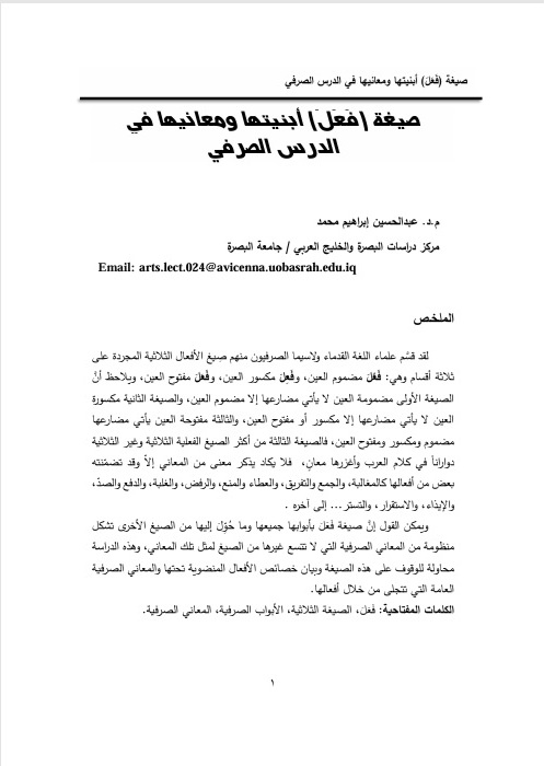 its forms and the other forms converted to it, constitutes a system of morphological meanings that no other form can accommodate. This study is an attempt to examine this form, clarify the characteristics of the verbs included under it, and explain the general morphological meanings that are revealed through its verbs. The research is divided into an introduction to abstract morphological forms and two sections. Firstly, the study presented the rules or characteristics of the verbs that belong to this form, noting the rules for each section separately. In the second section, the study explained the most common morphological meanings that can be found for this form, regardless of the vowel of the verb's 'ayn in the present tense