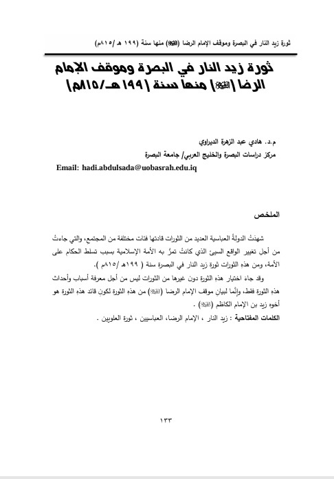 Zayd al-Nar’s revolt in Basra and the position of Imam al-Rida (u) regarding it in the year (199 AH / 815 AD)