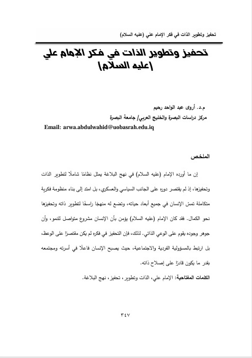 What Imam ʿAlī (peace be upon him) presented in Nahj al-Balāghah represents a comprehensive system for self-development and motivation. His role was not limited to political or military leadership; rather, it extended to the establishment of an integrated intellectual framework that touches every aspect of human life, offering a firm path for self-growth and the pursuit of perfection. The Imam (peace be upon him) believed that the human being is an ongoing project of development, and that the essence of existence lies in self-awareness. Therefore, motivation in his thought was not confined to moral exhortation, but was deeply connected to personal and social responsibility—where a person becomes an active, constructive force within their family and society in proportion to their ability to reform themselves.