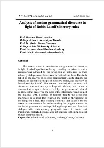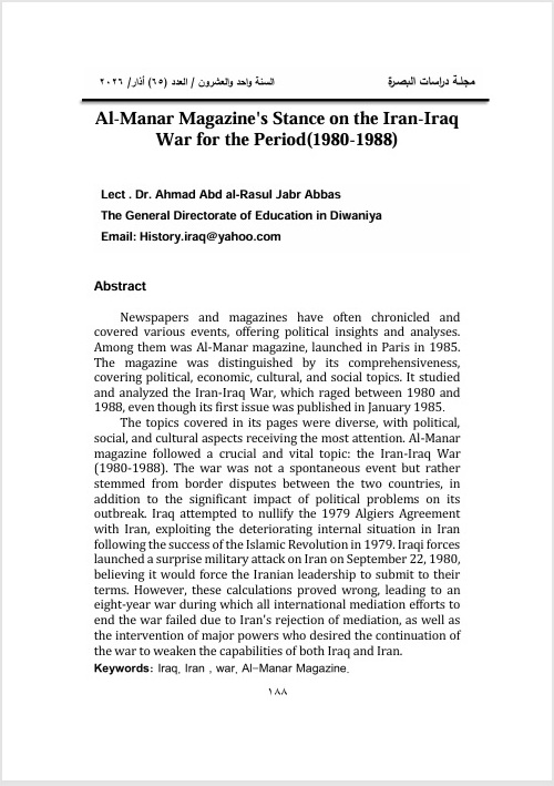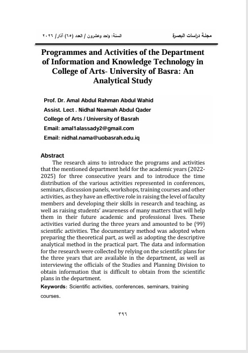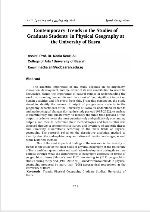 The research must specialize in one of the humanitarian studies that is concerned with Basrah Province affairs in particular and Iraqi affairs in general whether in the past, present or future, such as: language, literature, history, geography, sociology, philosophy, libraries and information systems, and other humanitarian studies.
