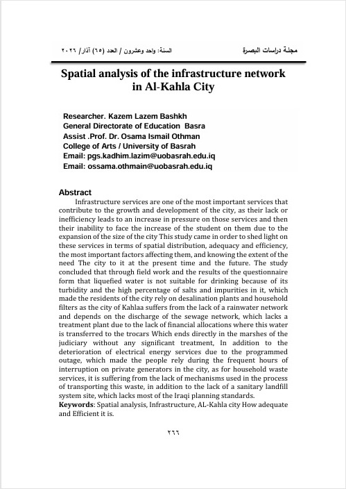 Spatial analysis of the infrastructure network in Al-Kahla City