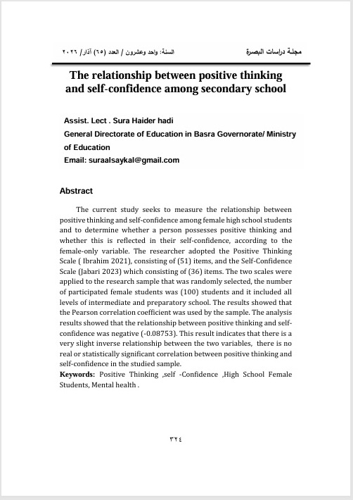 Researcher .Masara Ghalib Majeed, Prof. Dr. Safaa Abdel-Amir Rashm Al-Asadi , Prof. Dr. Tariq Gomaa Ali Al-Mawla